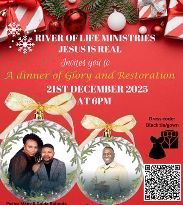 Throughout 2025, River of Life Ministries carried out strategic local and international events that resulted in spiritual renewal, visible transformation, and strengthened faith among individuals and communities. We hosted Healing & Miracles events in the UK and Switzerland, Corp à Corps Night Vigils, and the Dinner of Glory & Restoration. Media outreach extended teachings and testimonies beyond gatherings.